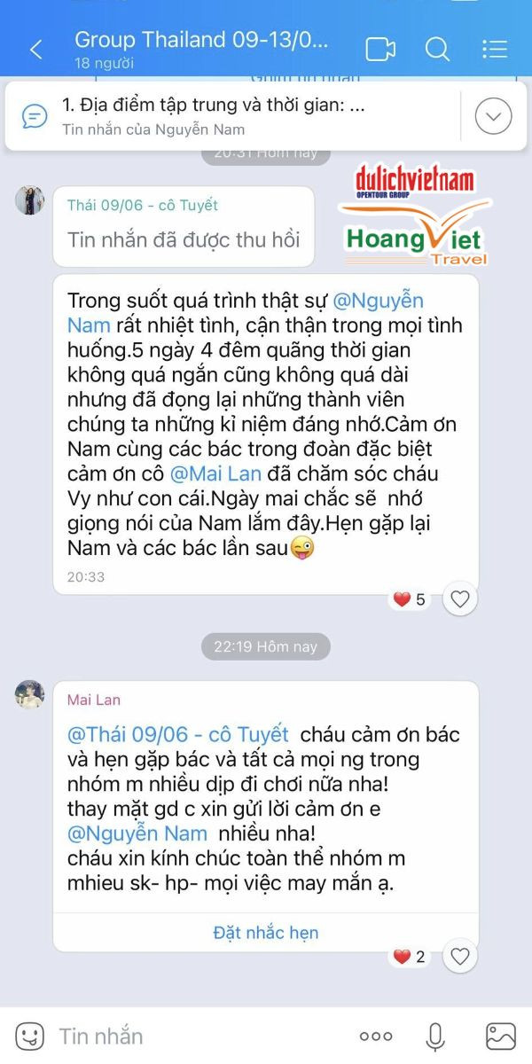 Cảm ơn cô Tuyết đã dành những lời khen cho tour Thái Lan của Hoàng Việt và Hướng Dẫn Viên Nguyễn Nam. Hy vọng cô sẽ tiếp tục đồng hành cũng Hoàng Việt Open trong những chuyến đi tiếp theo!