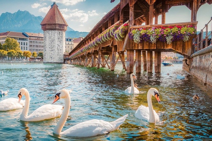 - Cây cầu mái gỗ Kapellbrucke (Cầu cổ Chapel): cây cầu có mái che cổ nhất ở châu Âu, bắc qua dòng sông Reuss. Điều thú vị là khi tản bộ trên cây cầu này, du khách sẽ được chiêm ngưỡng những bức họa cổ nổi tiếng treo dọc hai bên thành cầu. Cùng với Tháp nước Waaseturn nằm kề bên, cầu Chapel được xem là biểu tượng nhận diện của thành phố này khi xuất hiện trên các tấm bưu thiếp.