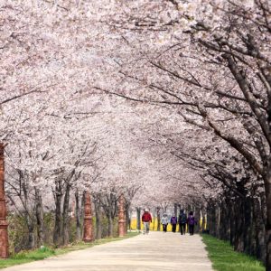 - Thưởng ngoạn và chụp ảnh trên con đường hoa anh đào nổi tiếng nhất Seoul, Công viên Yeouido đường Yunjungno phía sau tòa nhà Quốc Hội-điểm ngắm hoa anh đòa nổi tiếng nhất ở Seoul, được viền bằng 1.400 cây hoa anh đào nở đầy những bông hoa màu hồng nhạt.
