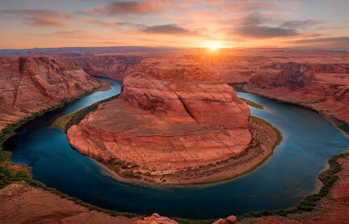 - Horseshoe Bend – Tuyệt tác thiên nhiên kỳ diệu hình móng ngựa – là một điểm đến thuộc vườn quốc gia Glen Canyon, tọa lạc tại sa mạc Arizona, miền Tây Hoa Kỳ. Đây là nơi gặp gỡ của con sông Colorado hiền hòa xanh ngọc với vùng đá sa thạch có niên đại hàng trăm triệu năm tuổi. Xuôi theo dòng chảy vô tận, con sông Colorado đã khéo léo điêu khắc lên vách núi những kỳ quan tuyệt diệu, trong đó có cấu trúc độc đáo hình móng ngựa, Horseshoe Bend. Vẻ đẹp hoàn hảo hội tụ tại đây chắc chắn sẽ khiến du khách không khỏi choáng ngợp.