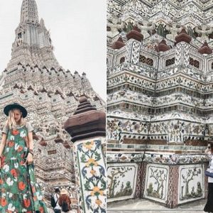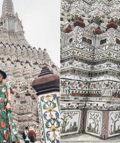 - Buổi chiều: Quý khách tham quan Chùa Wat Arun – ngôi chùa cổ kính nhất của Bangkok, có tên tiếng Việt là Bình Minh. Ngôi chùa hùng vĩ cao hơn 70m. Được xem là chùa đẹp nhất Bangkok không chỉ vì vị trí bên bờ sông Chaopraya mà còn lối thiết kế khác biệt với những ngôi chùa còn lại. Nhìn từ phía bên kia sông, tòa tháp như đứng uy nghi trên mặt nước. Xung quanh các ngọn tháp, những mảnh kính hoặc gốm sứ nhỏ được trang trí, tạo màu sắc lộng lẫy, bắt mắt, làm nên nét đẹp riêng biệt cho điểm đến này. Wat Arun có nhiều ngọn tháp, trong đó tháp cao nhất nằm ở trung tâm ngôi chùa. Ngọn tháp này được trang trí rất đẹp mắt, tinh xảo bằng các mảnh thuỷ tinh nhỏ và đồ sứ.
