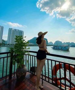 16h00: Quý khách quay trở lại tàu. Tàu sẽ di chuyển đưa Quý khách về lại Bến. Quý khách có thể tắm nắng trên boong tàu, nghe nhạc và thư giãn, hòa mình vào thiên nhiên của Vịnh Hạ Long.