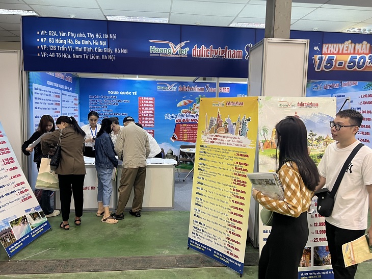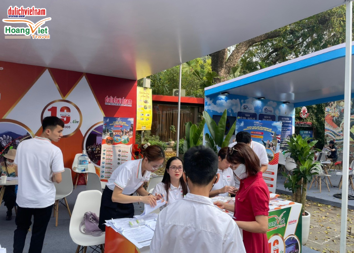 Hoangviet Travel., J.S.C tham gia hội chợ với gian hàng số 10, trong kỳ hội chợ này, công ty đã đưa ra những sản phẩm du lịch khuyến mại hấp dẫn, nhân viên của công ty có mặt tại gian hàng luôn nhiệt tình tư vấn cho khách hàng các chùm tour trong nước và quốc tế.