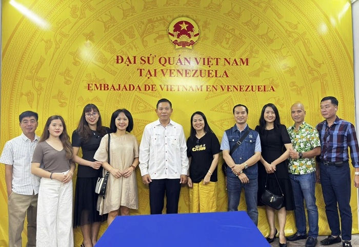 Trong khuôn khổ đoàn đại diện các doanh nghiệp du lịch tiêu biểu tham dự Hội chợ Du lịch Quốc tế tại Caracas – Venezuela theo lời mời và sự tiếp đón trọng thị của Bộ trưởng Bộ Du lịch Venezuela, ông Vũ Quyết Thắng – Giám đốc Hoàng Việt Travel đã có buổi làm việc với Đại sứ quán Việt Nam tại Venezuela. Tại đây, Đại sứ Vũ Trung Mỹ khẳng định Đại sứ quán sẽ luôn đồng hành, hỗ trợ doanh nghiệp mở rộng thị trường, góp phần quảng bá hình ảnh Việt Nam tại khu vực Mỹ Latinh, cũng như tạo điều kiện để các doanh nghiệp lữ hành tổ chức các đoàn khách du lịch từ Việt Nam sang.